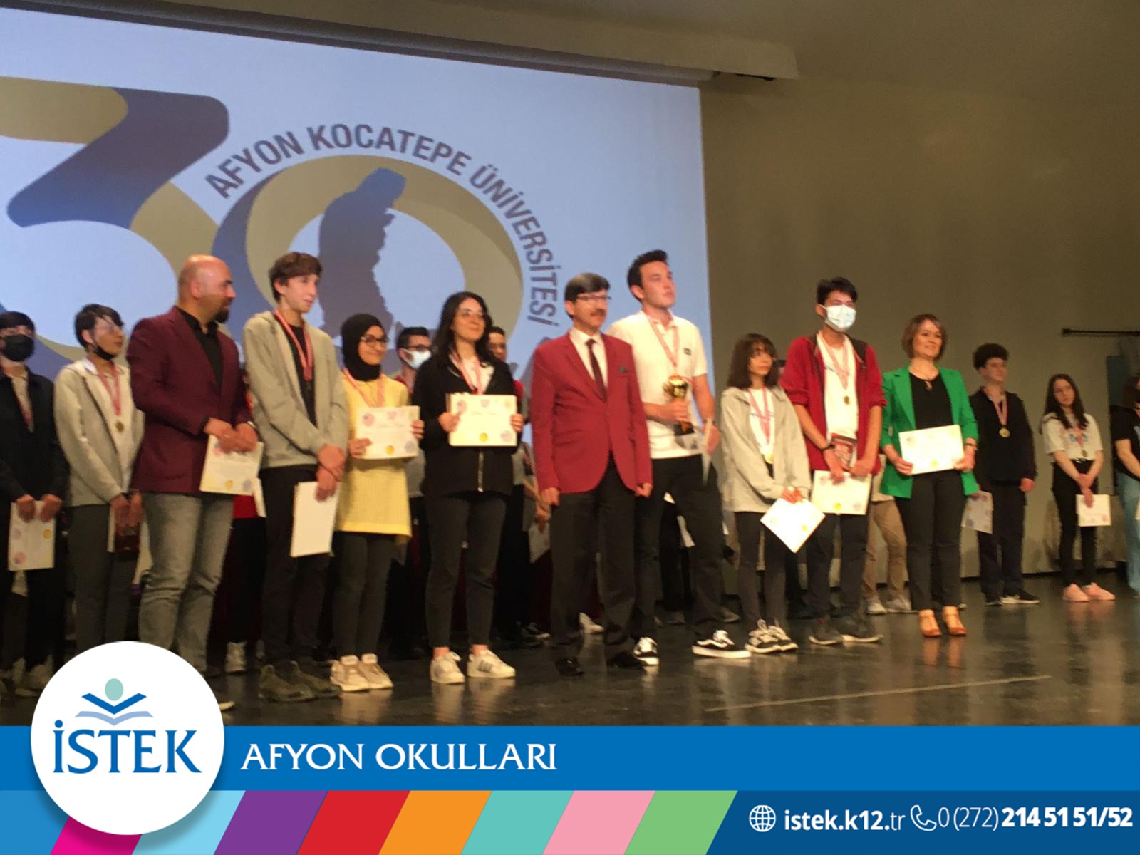 Afyon İl genelinde gerçekleşen matematik yarışmasında İstek Afyon Fen lisesi 1., Süleyman Demirel Fen Lisesi 2., Kamil Miras 3., olmuştur.Dereceye giren öğrenciler ödüllerini İl Milli Eğitim Müdürü Sayın Metin YALÇIN'dan aldılar. İl 1.olan ve bu gururu bize yaşatan öğrencilerimizi emeği geçen öğretmenlerimizi tebrik ediyor, başarılarının devamını diliyoruz.